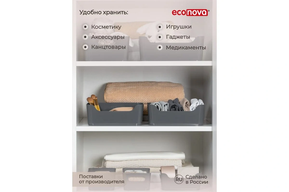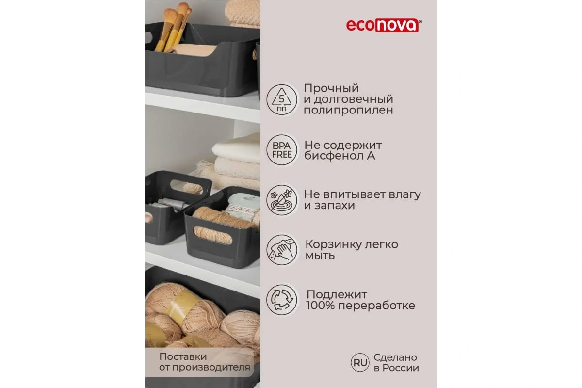Корзина универсальная Эконова Scandi серая 1.2л, 17 х 12 х 7.5см