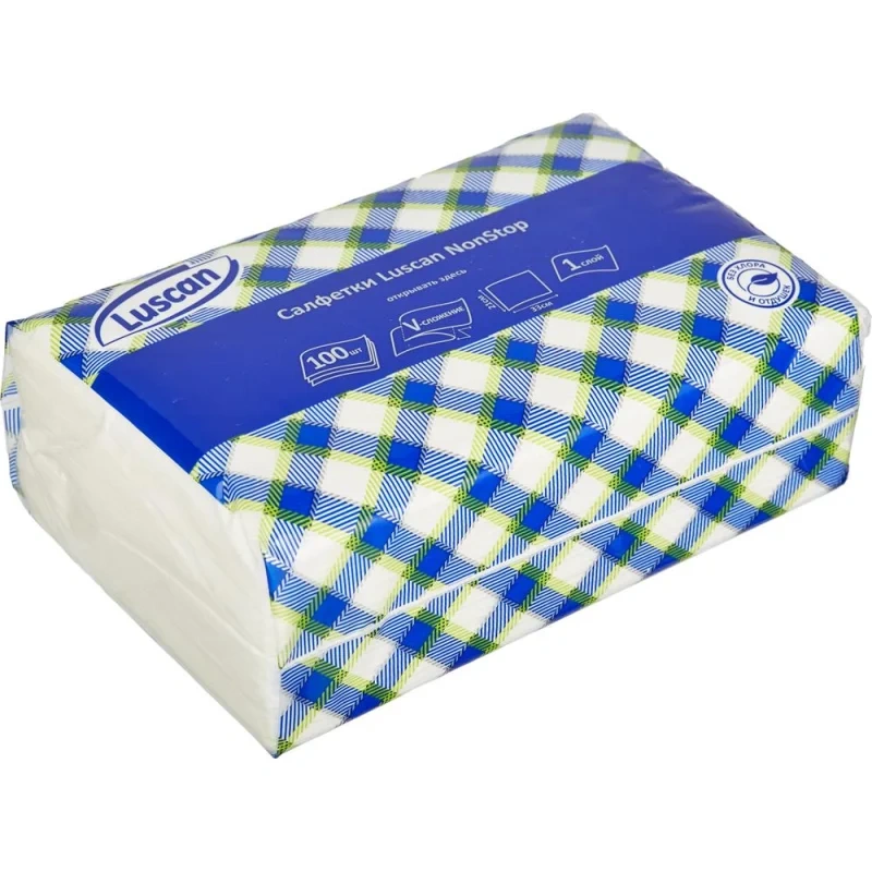 Салфетки бумажные Luscan NonStop белые 1-слойные 100 штук в пачке.