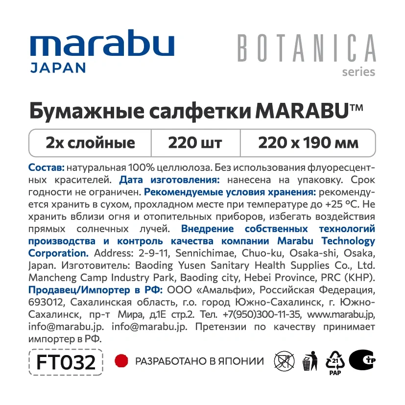 Салфетки бумажные Marabu Japan Botanica двуслойные, 220шт