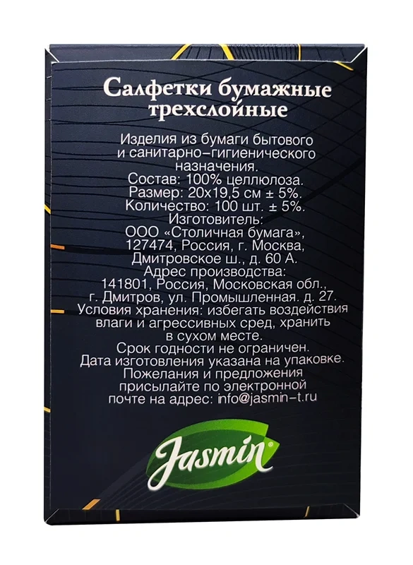 Салфетки бумажные Jasmin Royal 3 слоя, 100шт
