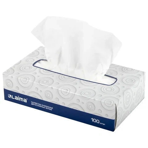 Салфетки косметические 100 шт. в картонном боксе 2-слойные, LAIMA 'Everyday', 20х20 см, 113588