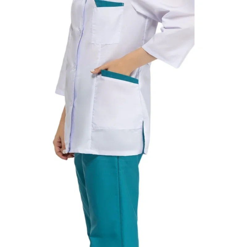 Костюм хирургический женский м01-КБР белый/бирюзовый (размер 104-108 (52-54), рост 158-164)