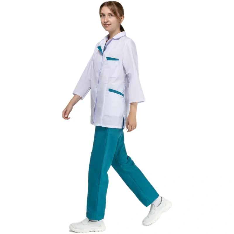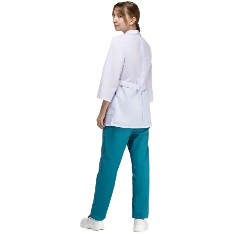 Костюм хирургический женский м01-КБР белый/бирюзовый (размер 52-54, рост 170-176)