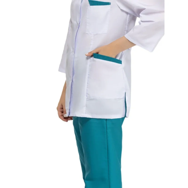 Костюм хирургический женский м01-КБР белый/бирюзовый (размер 56-58, рост 170-176)