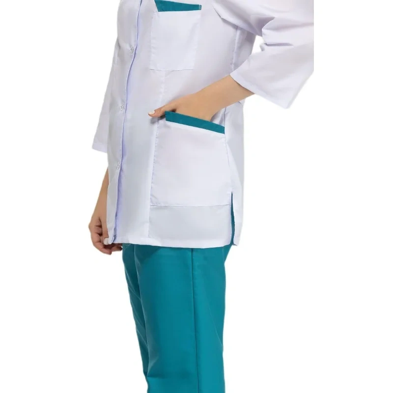 Костюм хирургический женский м01-КБР белый/бирюзовый (размер 64-66, рост 170-176)