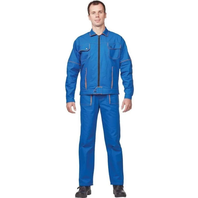 Спецодежда летняя костюм мужской л06-КБР (куртка брюки). Размер: 44–46. Рост: 170–176. Куртка прямого силуэта с застежкой на 'молнию'. На левом рукаве двухсекционный карман с клапаном Пояс куртки регулируется по ширинезастежками-хлястиками Брюки с застежкой гульфика на пуговицы, с накладными карманами Ткань: саржа (100%хлопок) Плотность ткани: 240 г/м2. Цвет: васильковый, отделка: оранжевый. Температурный режим стирки — не выше 40 градусов. Есть заключение Минпромторга России для получения компенсации от ФСС на охрану труда. Сферы применения: сельское хозяйство, логистика, легкая промышленность, строительство, озеленение, автомобильная. В коллекции л06 представлены комплекты: куртка с брюками л06-КБР и куртка с полукомбинезоном л06-КПК .