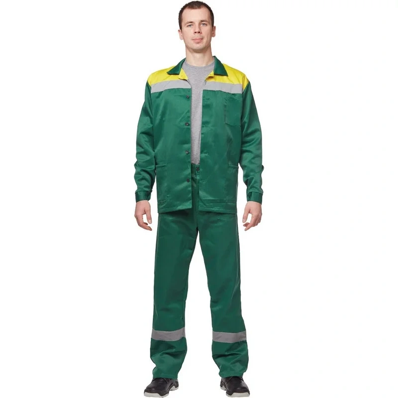 Костюм рабочий летний мужской Механик (р.44-46) 182-188, зелено-желтый, брючный, с СОП