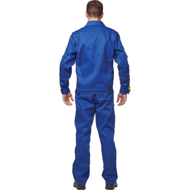 Спецодежда летняя костюм мужской л10-КПК состоит из куртки и полукомбинезона (размер 56–58, рост 182–188). Изготовлен из смесовой ткани (65% полиэстер, 35% хлопок), плотность ткани — 240 г/кв.м. Куртка с застежкой на молнию и контактную ленту. Многофункциональные карманы, специальный карман для телефона, окошко для бейджика. На спине куртки складки для свободы движения. Рукава с усилительными налокотниками, защищающими от истирания. Ширина пояса куртки регулируется патой. Полукомбинезон с многофункциональными карманами и специальным карманом для инструментов, с усилительными наколенниками. Бретели регулируются по длине. Костюм обеспечивает защиту от производственных загрязнений, от механических повреждений (истирание). Сферы применения: логистика, легкая промышленность, тяжелая промышленность, строительство, озеленение. ГОСТ 12.4.280–2014, ТР ТС 019/2011.