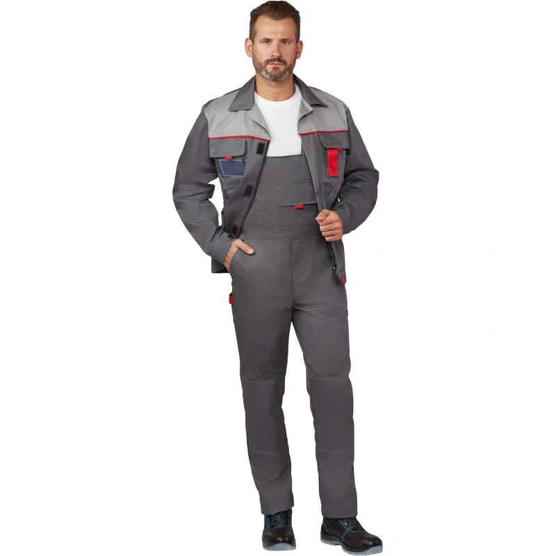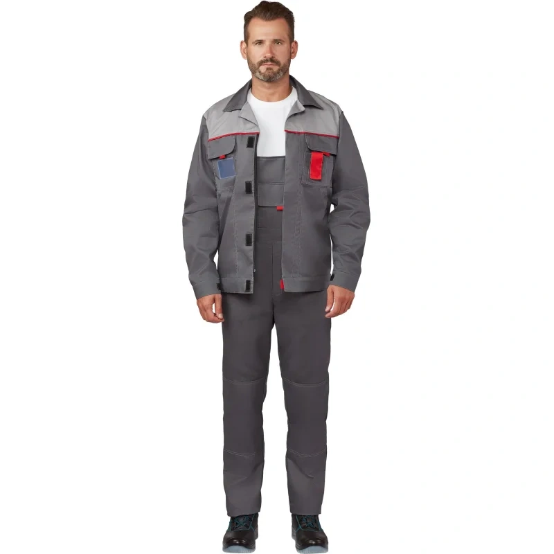 Коллекция рабочей одежды л10 представлена также мужскими и женскими рабочими костюмами, состоящими из куртки и брюк или из куртки и полукомбинезона.