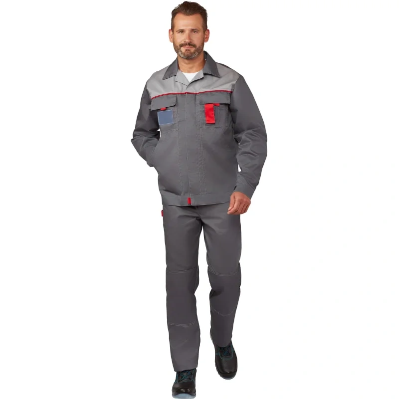 Спецодежда летняя костюм мужской л10-КБР состоит из куртки и брюк (размер 64–66, рост 170–176) . Изготовлен из смесовой ткани (65% полиэстер, 35% хлопок), плотностью 240 г/кв.м. Куртка с застежкой на молнию и контактную ленту. Многофункциональные карманы, специальный карман для телефона, окошко для бейджика. На спине куртки складки для свободы движения. Рукава с усилительными налокотниками, защищающими от истирания. Ширина пояса куртки регулируется патой. Брюки с резинкой на поясе, многофункциональными карманами и специальным карманом для инструментов, с усилительными наколенниками. Костюм обеспечивает защиту от общих производственных загрязнений, от механических повреждений (истирания). ГОСТ 12.4.280–2014, ТР ТС 019/2011. Сферы применения: сельское хозяйство, логистика, легкая промышленность, строительство, озеленение.