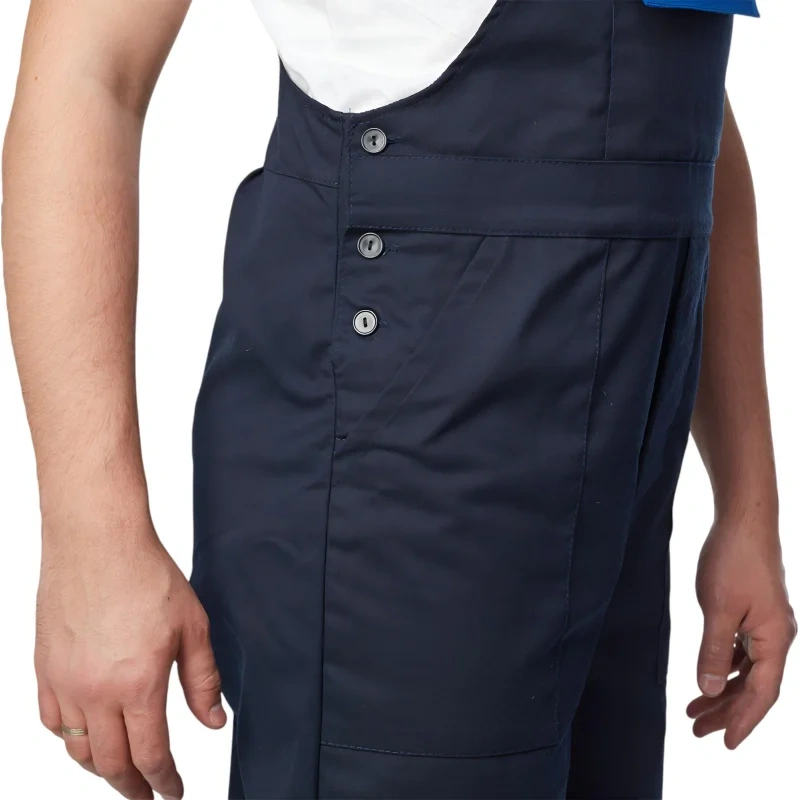 Костюм изготовлен из ткани ’Саржа’, которая состоит из 100% хлопка. Плотность материала составляет 240 г/м2, что обеспечивает высокую прочность и комфорт при носке. Хлопковая ткань обладает хорошей воздухопроницаемостью, что особенно важно при работе в теплую погоду. Материал не имеет специальной пропитки, что делает его безопасным и гипоаллергенным. Полукомбинезон имеет прямой силуэт и оснащен накладными карманами, что обеспечивает удобство и функциональность. Гульфик на пуговицах обеспечивает надежную застежку, а эластичная тесьма по талии спинки позволяет регулировать посадку по фигуре, обеспечивая дополнительный комфорт. Регулируемые бретели позволяют адаптировать полукомбинезон под индивидуальные особенности пользователя.