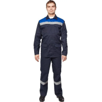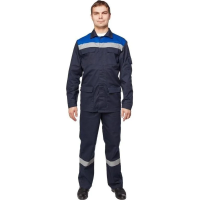 Спецодежда летняя костюм мужской л05-КБР состоит из куртки и брюк (размер 56–58, рост 182–188). Изготовлен из ткани саржа (100% хлопок) плотностью 240 г/м2. Куртка прямого силуэта c объемными накладными карманами и супатнoй застежкой на пуговицы. Брюки c накладными карманами и гульфиком на пуговицах. Куртка и брюки оснащены светоотражающей полосой. Костюм обеспечивает защиту от производственных загрязнений, от истирания, от механических повреждений. Сферы применения: сельское хозяйство, легкая промышленность, строительство, озеленение. ГОСТ 12.4.280–2014, ТР ТС 019/2011. Температурный режим стирки — не выше 40 градусов.Коллекция спецодежды л05, помимо комплектов куртка и брюки л05-КБР, представлена также комплектами куртка и полукомбинезон л05-КПК