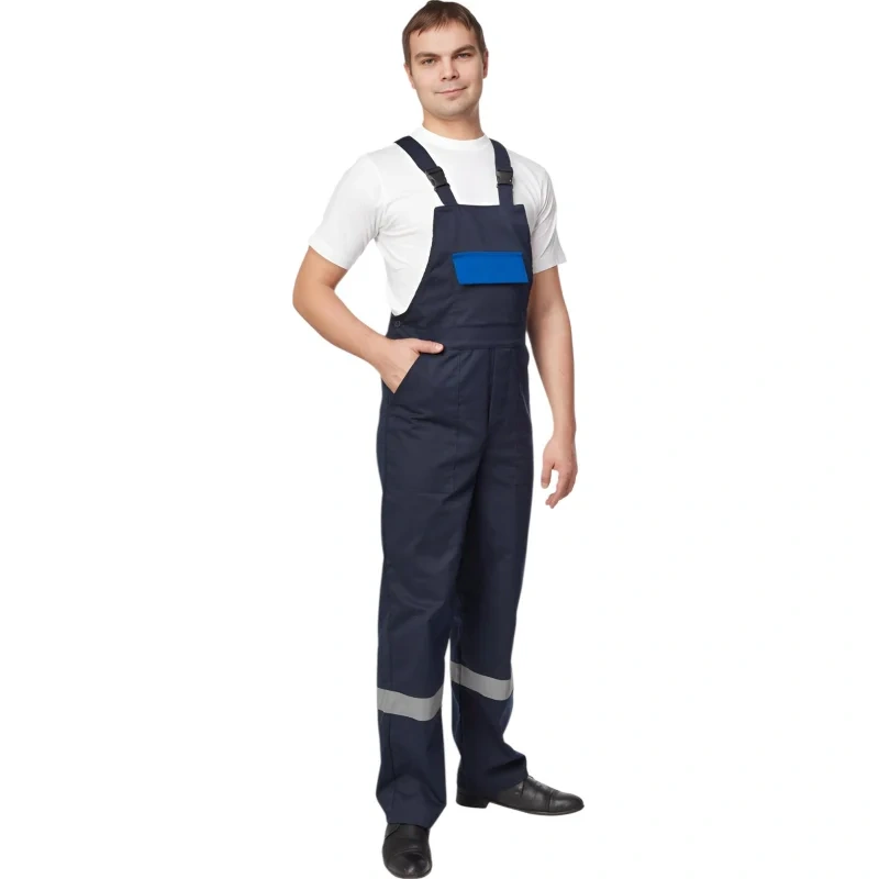 Костюм изготовлен из ткани ’Саржа’, которая состоит из 100% хлопка. Плотность материала составляет 240 г/м2, что обеспечивает высокую прочность и комфорт при носке. Хлопковая ткань обладает хорошей воздухопроницаемостью, что особенно важно при работе в теплую погоду. Материал не имеет специальной пропитки, что делает его безопасным и гипоаллергенным. Полукомбинезон имеет прямой силуэт и оснащен накладными карманами, что обеспечивает удобство и функциональность. Гульфик на пуговицах обеспечивает надежную застежку, а эластичная тесьма по талии спинки позволяет регулировать посадку по фигуре, обеспечивая дополнительный комфорт. Регулируемые бретели позволяют адаптировать полукомбинезон под индивидуальные особенности пользователя.