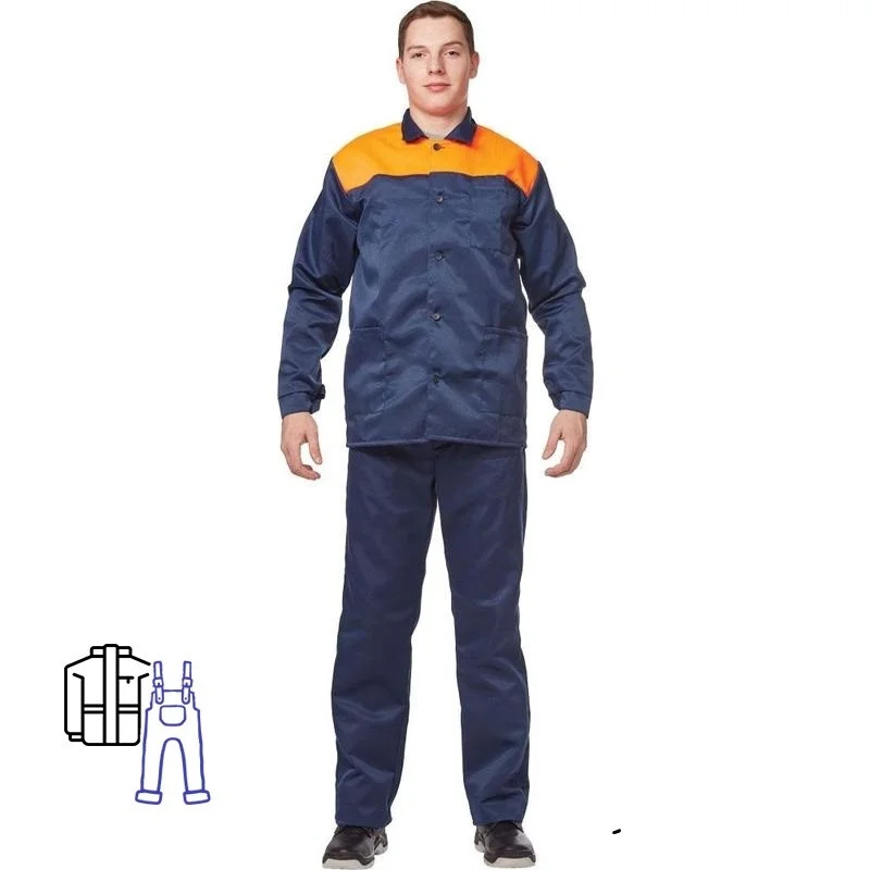 Костюм рабочий летний мужской (р.64-66) 158-164, сине-оранжевый, с полукомбинезоном, л16