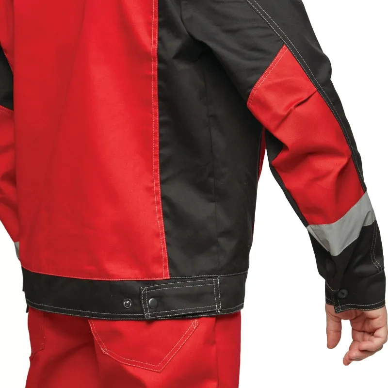 Костюм рабочий летний мужской л21-КПК КОС212 с СОП красный/черный (размер 44-46, рост 170-176). Коллекция спецодежды л21 представляет собой надежное решение для защиты от общих производственных загрязнений и от механических повреждений, от истирания. Костюм мужской л21-КПК состоит из куртки и полукомбинезона. Идеально подходит для использования в сельском хозяйстве, логистике, легкой и тяжелой промышленности, а также в строительстве. Костюм изготовлен из смесовой ткани с водоотталкивающей пропиткой (ВО), состоящей на 65% из полиэстера и на 35% из хлопка. Плотность материала составляет 235 г/кв.м. Такая комбинация обеспечивает высокую износостойкость и комфорт при носке. Материал не имеет специальной пропитки, но его структура обеспечивает достаточную защиту от загрязнений. Защитные свойства: защита от общих производственных загрязнений. Куртка имеет прямой силуэт и регулируется по фигуре с помощью кнопок на поясе. Застегивается на молнию и кнопки. На куртке два верхних накладных кармана. Рукава снабжены налокотниками и манжетами, что повышает комфорт и долговечность изделия. Полукомбинезон также имеет прямой силуэт и застегивается на пуговицы. Впереди расположены два накладных кармана со скошенным входом и один верхний накладной карман. Сзади полукомбинезон имеет два накладных кармана, один из которых на кнопке, а также боковой накладной карман на кнопке. Светоотражающие полосы шириной 50 мм размещены на груди, спине, рукавах и внизу полукомбинезона, обеспечивая хорошую видимость в условиях недостаточной освещенности. Рекомендации по уходу: для продления срока службы изделия рекомендуется соблюдать инструкции по стирке и уходу, указанные на этикетке. Стандарты: ГОСТ 12.4.280-2014, ТР ТС 019/2011. Коллекция спецодежды Премиум-класса л21 выполнена в стильном, функциональном дизайне, в широкой цветовой гамме. Костюмы, представленные в ней, предназначены для защиты от общих производственных загрязнений и от механических повреждений, от истирания. Рекомендуется для инженерно-технических работников.