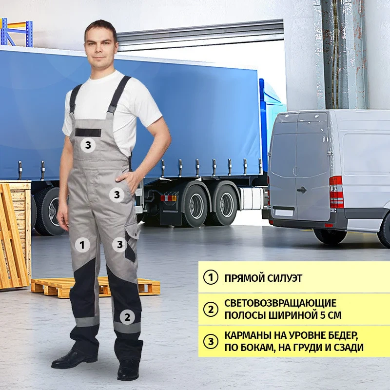 Костюм рабочий летний мужской л21-КПК КОС212 с СОП серый/черный (размер 44-46, рост 170-176). Коллекция спецодежды л21 представляет собой надежное решение для защиты от общих производственных загрязнений и от механических повреждений, от истирания. Костюм мужской л21-КПК состоит из куртки и полукомбинезона. Идеально подходит для использования в сельском хозяйстве, логистике, легкой и тяжелой промышленности, а также в строительстве. Костюм изготовлен из смесовой ткани с водоотталкивающей пропиткой (ВО), состоящей на 65% из полиэстера и на 35% из хлопка. Плотность материала составляет 235 г/кв.м. Такая комбинация обеспечивает высокую износостойкость и комфорт при носке. Материал не имеет специальной пропитки, но его структура обеспечивает достаточную защиту от загрязнений. Защитные свойства: защита от общих производственных загрязнений. Куртка имеет прямой силуэт и регулируется по фигуре с помощью кнопок на поясе. Застегивается на молнию и кнопки. На куртке два верхних накладных кармана. Рукава снабжены налокотниками и манжетами, что повышает комфорт и долговечность изделия. Полукомбинезон также имеет прямой силуэт и застегивается на пуговицы. Впереди расположены два накладных кармана со скошенным входом и один верхний накладной карман. Сзади полукомбинезон имеет два накладных кармана, один из которых на кнопке, а также боковой накладной карман на кнопке. Светоотражающие полосы шириной 50 мм размещены на груди, спине, рукавах и внизу полукомбинезона, обеспечивая хорошую видимость в условиях недостаточной освещенности. Рекомендации по уходу: для продления срока службы изделия рекомендуется соблюдать инструкции по стирке и уходу, указанные на этикетке. Стандарты: ГОСТ 12.4.280-2014, ТР ТС 019/2011. Коллекция спецодежды Премиум-класса л21 выполнена в стильном, функциональном дизайне, в широкой цветовой гамме. Костюмы, представленные в ней, предназначены для защиты от общих производственных загрязнений и от механических повреждений, от истирания. Рекомендуется для инженерно-технических работников.