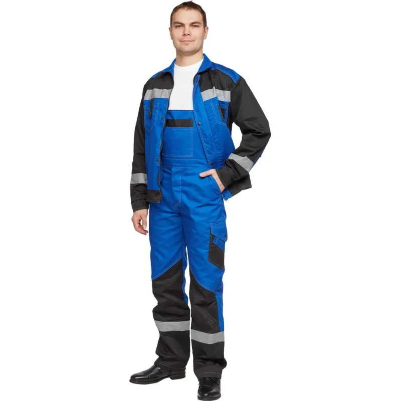 Костюм рабочий летний мужской л21-КПК КОС212 с СОП васильковый/черный (размер 44-46, рост 170-176). Коллекция спецодежды л21 представляет собой надежное решение для защиты от общих производственных загрязнений и от механических повреждений, от истирания. Костюм мужской л21-КПК состоит из куртки и полукомбинезона. Идеально подходит для использования в сельском хозяйстве, логистике, легкой и тяжелой промышленности, а также в строительстве. Костюм изготовлен из смесовой ткани с водоотталкивающей пропиткой (ВО), состоящей на 65% из полиэстера и на 35% из хлопка. Плотность материала составляет 235 г/кв.м. Такая комбинация обеспечивает высокую износостойкость и комфорт при носке. Материал не имеет специальной пропитки, но его структура обеспечивает достаточную защиту от загрязнений. Защитные свойства: защита от общих производственных загрязнений. Куртка имеет прямой силуэт и регулируется по фигуре с помощью кнопок на поясе. Застегивается на молнию и кнопки. На куртке два верхних накладных кармана. Рукава снабжены налокотниками и манжетами, что повышает комфорт и долговечность изделия. Полукомбинезон также имеет прямой силуэт и застегивается на пуговицы. Впереди расположены два накладных кармана со скошенным входом и один верхний накладной карман. Сзади полукомбинезон имеет два накладных кармана, один из которых на кнопке, а также боковой накладной карман на кнопке. Светоотражающие полосы шириной 50 мм размещены на груди, спине, рукавах и внизу полукомбинезона, обеспечивая хорошую видимость в условиях недостаточной освещенности. Рекомендации по уходу: для продления срока службы изделия рекомендуется соблюдать инструкции по стирке и уходу, указанные на этикетке. Стандарты: ГОСТ 12.4.280-2014, ТР ТС 019/2011. Коллекция спецодежды Премиум-класса л21 выполнена в стильном, функциональном дизайне, в широкой цветовой гамме. Костюмы, представленные в ней, предназначены для защиты от общих производственных загрязнений и от механических повреждений, от истирания. Рекомендуется для инженерно-технических работников.