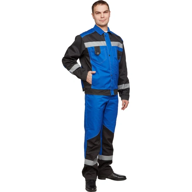 Костюм рабочий летний мужской л21-КПК КОС212 с СОП васильковый/черный (размер 48-50, рост 170-176). Коллекция спецодежды л21 представляет собой надежное решение для защиты от общих производственных загрязнений и от механических повреждений, от истирания. Костюм мужской л21-КПК состоит из куртки и полукомбинезона. Идеально подходит для использования в сельском хозяйстве, логистике, легкой и тяжелой промышленности, а также в строительстве. Костюм изготовлен из смесовой ткани с водоотталкивающей пропиткой (ВО), состоящей на 65% из полиэстера и на 35% из хлопка. Плотность материала составляет 235 г/кв.м. Такая комбинация обеспечивает высокую износостойкость и комфорт при носке. Материал не имеет специальной пропитки, но его структура обеспечивает достаточную защиту от загрязнений. Защитные свойства: защита от общих производственных загрязнений. Куртка имеет прямой силуэт и регулируется по фигуре с помощью кнопок на поясе. Застегивается на молнию и кнопки. На куртке два верхних накладных кармана. Рукава снабжены налокотниками и манжетами, что повышает комфорт и долговечность изделия. Полукомбинезон также имеет прямой силуэт и застегивается на пуговицы. Впереди расположены два накладных кармана со скошенным входом и один верхний накладной карман. Сзади полукомбинезон имеет два накладных кармана, один из которых на кнопке, а также боковой накладной карман на кнопке. Светоотражающие полосы шириной 50 мм размещены на груди, спине, рукавах и внизу полукомбинезона, обеспечивая хорошую видимость в условиях недостаточной освещенности. Рекомендации по уходу: для продления срока службы изделия рекомендуется соблюдать инструкции по стирке и уходу, указанные на этикетке. Стандарты: ГОСТ 12.4.280-2014, ТР ТС 019/2011. Коллекция спецодежды Премиум-класса л21 выполнена в стильном, функциональном дизайне, в широкой цветовой гамме. Костюмы, представленные в ней, предназначены для защиты от общих производственных загрязнений и от механических повреждений, от истирания. Рекомендуется для инженерно-технических работников.