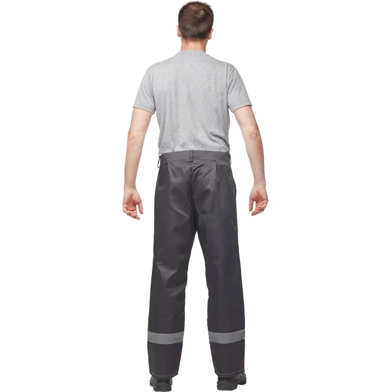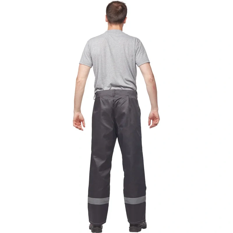 Брюки оснащены центральной застёжкой на молнии и пуговицей по поясу. На поясе расположены шлёвки для ремня. На брюках расположены два накладных кармана с наклонным входом. Дополнительные наколенники из основной ткани, для увеличения срока службы. Светоотражающая лента шириной 50 мм настрочена по низу брюк.