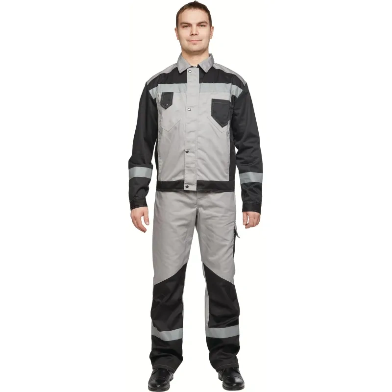 Костюм рабочий летний мужской (р.52-54) 170-176, серо-черный, брючный, с СОП, л21