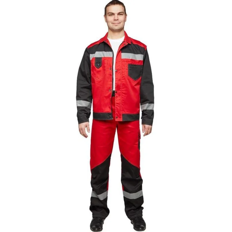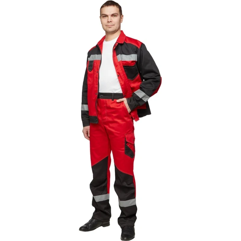 Костюм рабочий летний мужской (р.52-54) 182-188, красно-черный, брючный, с СОП, л21