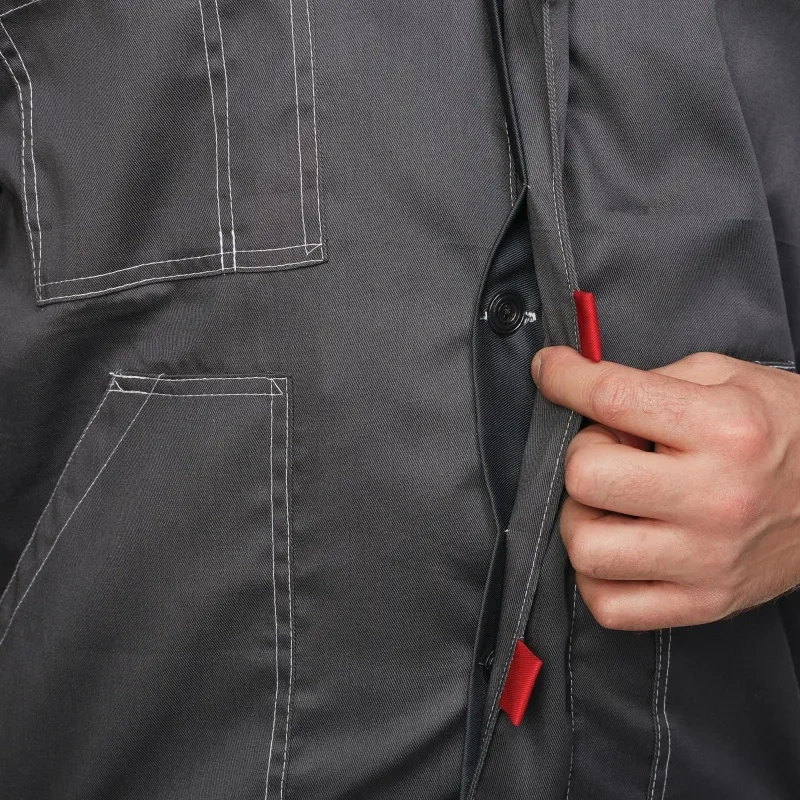 Костюм рабочий летний мужской л20-КПК с СОП серый/красный (размер 52-54, рост 182-188). Состоит из куртки и полукомбинезона. Костюм предназначен для использования в сферах логистики, строительства, ЖКХ, сельского хозяйства, лёгкой промышленности и озеленения.