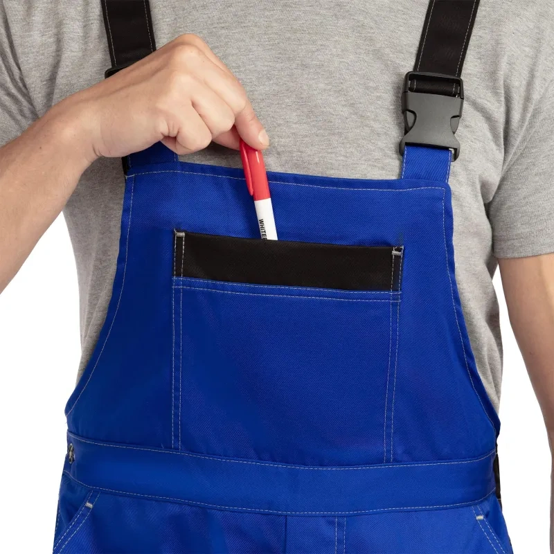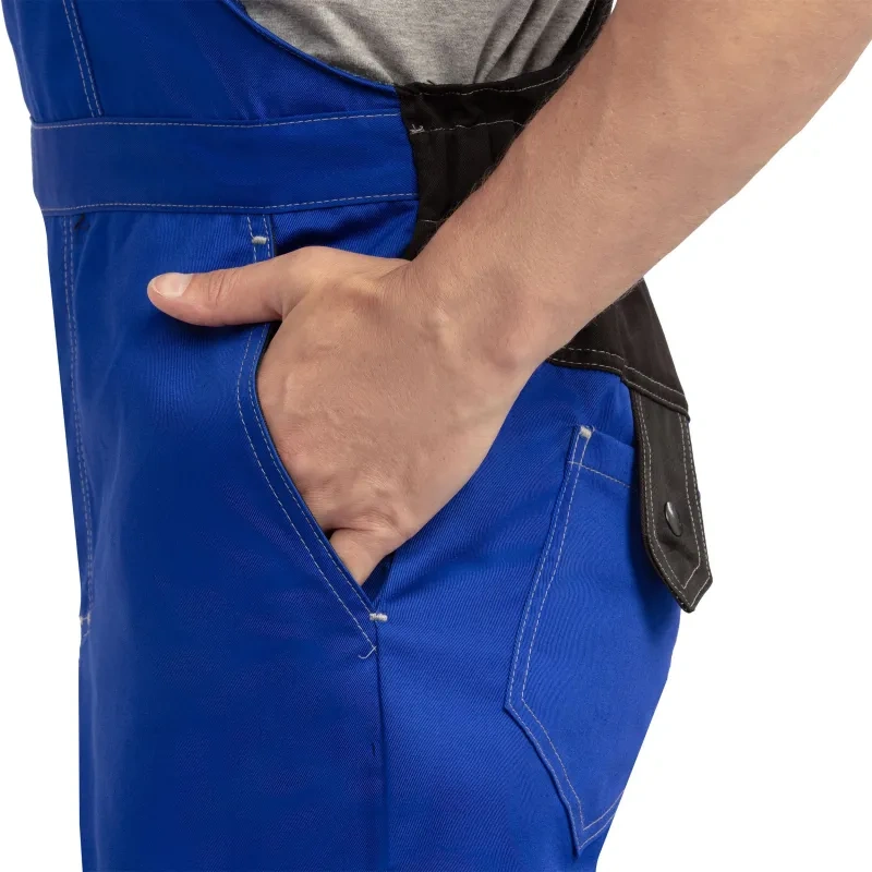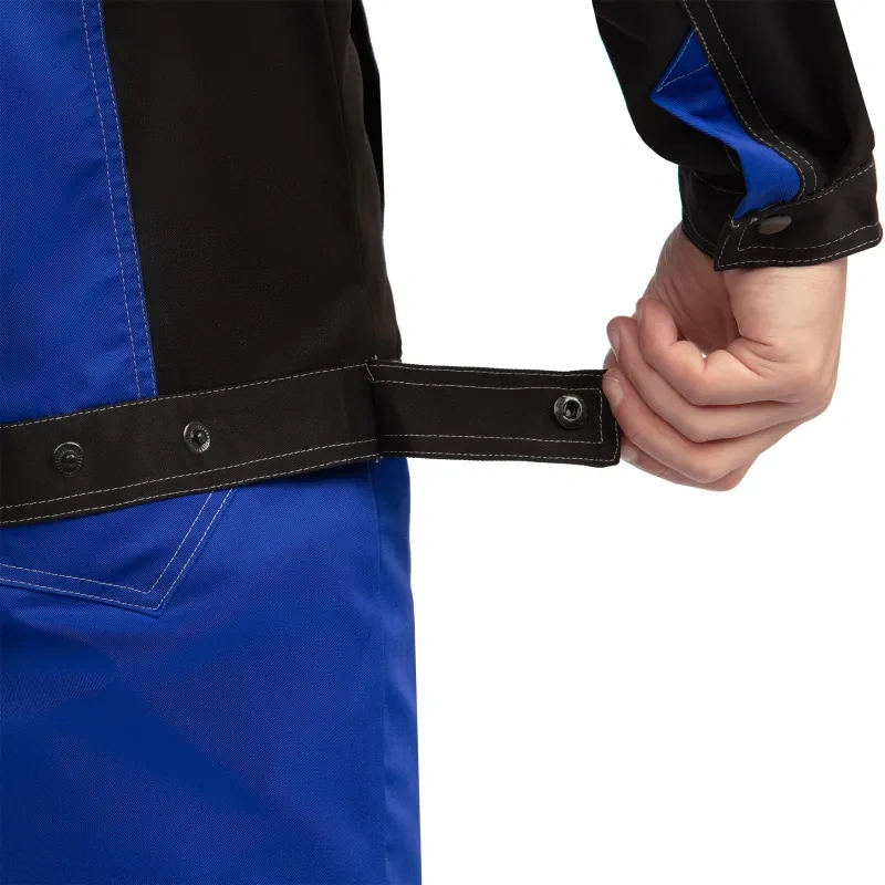 Костюм рабочий летний мужской л21-КПК КОС212 с СОП васильковый/черный (размер 52-54, рост 182-188). Коллекция спецодежды л21 представляет собой надежное решение для защиты от общих производственных загрязнений и от механических повреждений, от истирания. Костюм мужской л21-КПК состоит из куртки и полукомбинезона. Идеально подходит для использования в сельском хозяйстве, логистике, легкой и тяжелой промышленности, а также в строительстве. Костюм изготовлен из смесовой ткани с водоотталкивающей пропиткой (ВО), состоящей на 65% из полиэстера и на 35% из хлопка. Плотность материала составляет 235 г/кв.м. Такая комбинация обеспечивает высокую износостойкость и комфорт при носке. Материал не имеет специальной пропитки, но его структура обеспечивает достаточную защиту от загрязнений. Защитные свойства: защита от общих производственных загрязнений. Куртка имеет прямой силуэт и регулируется по фигуре с помощью кнопок на поясе. Застегивается на молнию и кнопки. На куртке два верхних накладных кармана. Рукава снабжены налокотниками и манжетами, что повышает комфорт и долговечность изделия. Полукомбинезон также имеет прямой силуэт и застегивается на пуговицы. Впереди расположены два накладных кармана со скошенным входом и один верхний накладной карман. Сзади полукомбинезон имеет два накладных кармана, один из которых на кнопке, а также боковой накладной карман на кнопке. Светоотражающие полосы шириной 50 мм размещены на груди, спине, рукавах и внизу полукомбинезона, обеспечивая хорошую видимость в условиях недостаточной освещенности. Рекомендации по уходу: для продления срока службы изделия рекомендуется соблюдать инструкции по стирке и уходу, указанные на этикетке. Стандарты: ГОСТ 12.4.280-2014, ТР ТС 019/2011. Коллекция спецодежды Премиум-класса л21 выполнена в стильном, функциональном дизайне, в широкой цветовой гамме. Костюмы, представленные в ней, предназначены для защиты от общих производственных загрязнений и от механических повреждений, от истирания. Рекомендуется для инженерно-технических работников.