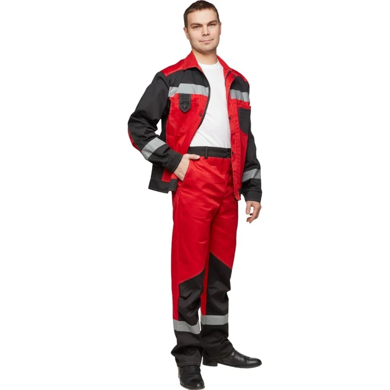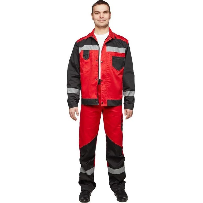 Костюм рабочий летний мужской (р.56-58) 170-176, красно-черный, брючный, с СОП, л21
