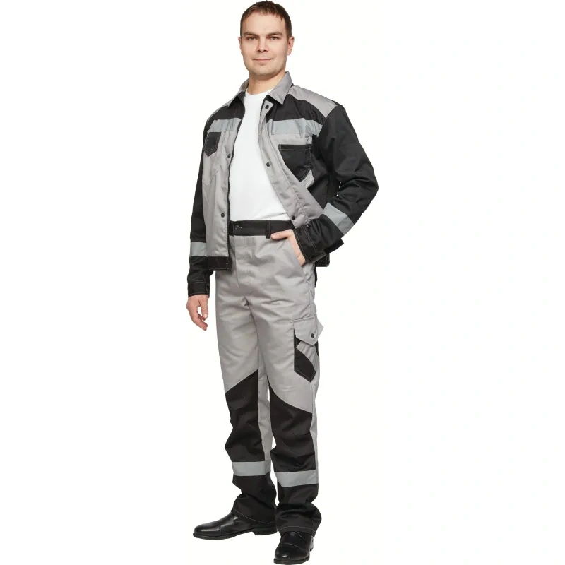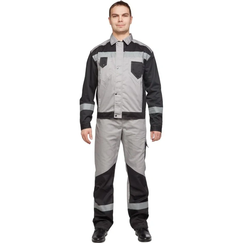 Костюм рабочий летний мужской (р.56-58) 182-188, серо-черный, брючный, с СОП, л21