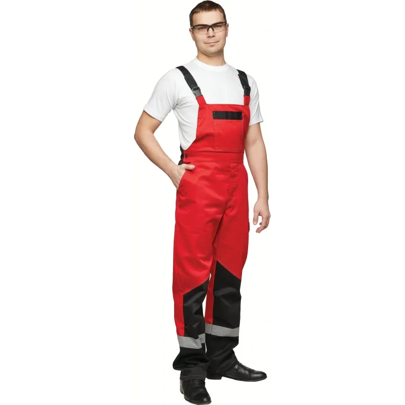 Костюм рабочий летний мужской (р.60-62) 170-176, красно-черный, с полукомбинезоном, с СОП, л21