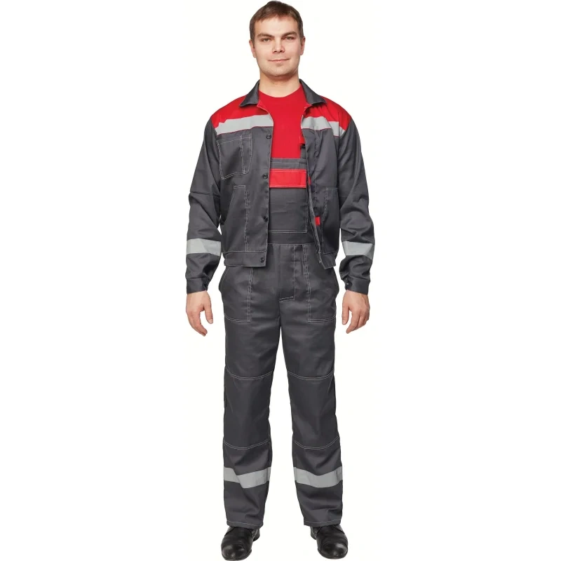 Костюм рабочий летний мужской л20-КПК с СОП серый/красный (размер 60-62, рост 170-176). Состоит из куртки и полукомбинезона. Костюм предназначен для использования в сферах логистики, строительства, ЖКХ, сельского хозяйства, лёгкой промышленности и озеленения.