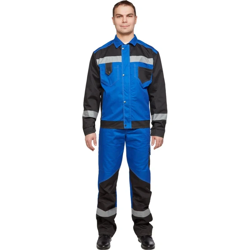 Костюм рабочий летний мужской л21-КПК КОС212 с СОП васильковый/черный (размер 64-66, рост 182-188). Коллекция спецодежды л21 представляет собой надежное решение для защиты от общих производственных загрязнений и от механических повреждений, от истирания. Костюм мужской л21-КПК состоит из куртки и полукомбинезона. Идеально подходит для использования в сельском хозяйстве, логистике, легкой и тяжелой промышленности, а также в строительстве. Костюм изготовлен из смесовой ткани с водоотталкивающей пропиткой (ВО), состоящей на 65% из полиэстера и на 35% из хлопка. Плотность материала составляет 235 г/кв.м. Такая комбинация обеспечивает высокую износостойкость и комфорт при носке. Материал не имеет специальной пропитки, но его структура обеспечивает достаточную защиту от загрязнений. Защитные свойства: защита от общих производственных загрязнений. Куртка имеет прямой силуэт и регулируется по фигуре с помощью кнопок на поясе. Застегивается на молнию и кнопки. На куртке два верхних накладных кармана. Рукава снабжены налокотниками и манжетами, что повышает комфорт и долговечность изделия. Полукомбинезон также имеет прямой силуэт и застегивается на пуговицы. Впереди расположены два накладных кармана со скошенным входом и один верхний накладной карман. Сзади полукомбинезон имеет два накладных кармана, один из которых на кнопке, а также боковой накладной карман на кнопке. Светоотражающие полосы шириной 50 мм размещены на груди, спине, рукавах и внизу полукомбинезона, обеспечивая хорошую видимость в условиях недостаточной освещенности. Рекомендации по уходу: для продления срока службы изделия рекомендуется соблюдать инструкции по стирке и уходу, указанные на этикетке. Стандарты: ГОСТ 12.4.280-2014, ТР ТС 019/2011. Коллекция спецодежды Премиум-класса л21 выполнена в стильном, функциональном дизайне, в широкой цветовой гамме. Костюмы, представленные в ней, предназначены для защиты от общих производственных загрязнений и от механических повреждений, от истирания. Рекомендуется для инженерно-технических работников.