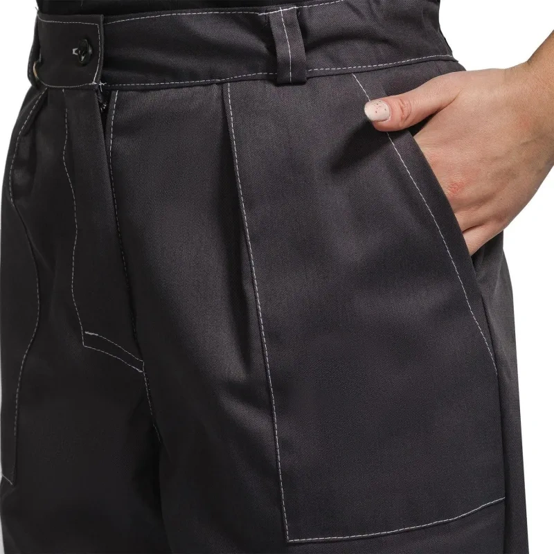 Брюки оснащены центральной застёжкой на молнии и пуговицей по поясу. На поясе расположены шлёвки для ремня. На брюках расположены два накладных кармана с наклонным входом. Дополнительные наколенники из основной ткани, для увеличения срока службы. Светоотражающая лента шириной 50 мм настрочена по низу брюк.