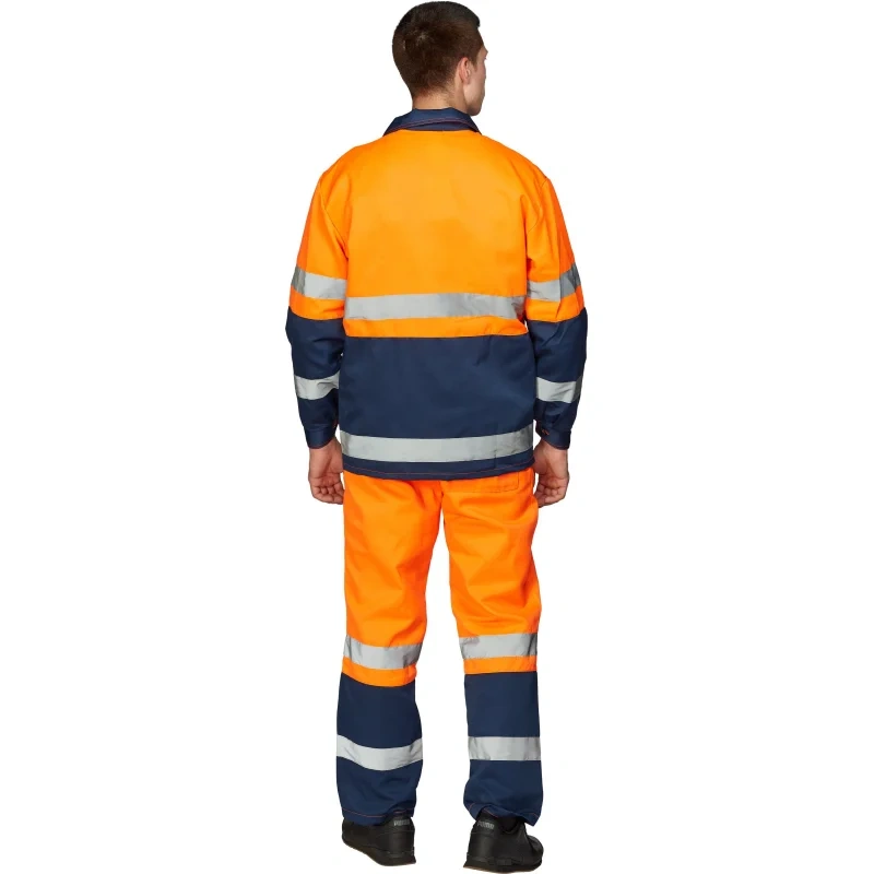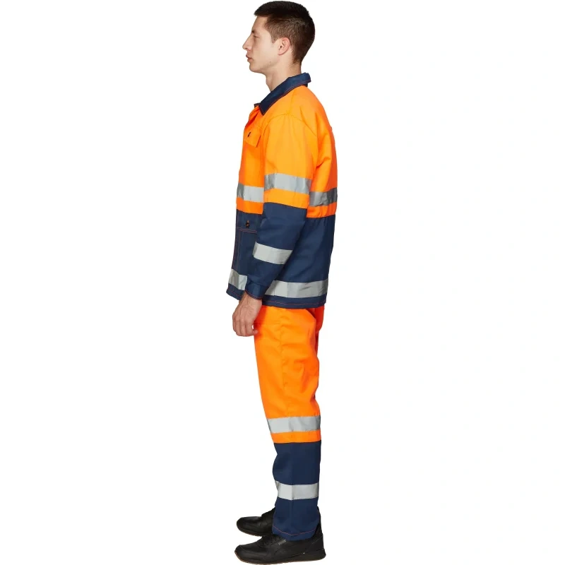 Защитные свойства: от общих производственных загрязнений. Основной цвет — оранжевый, нижние части куртки и брюк, а также некоторые элементы выполнены в синем цвете.