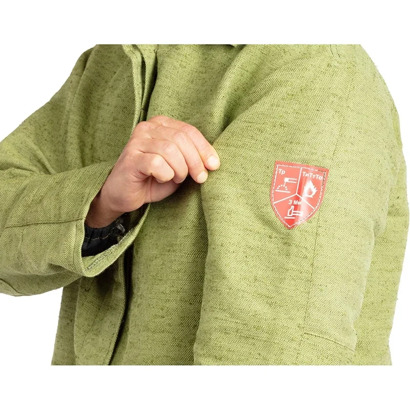 Куртка прямого силуэта, с центральной потайной застёжкой на пуговицы, с отложным воротником, на воротнике накладка из огнестойкой ткани.