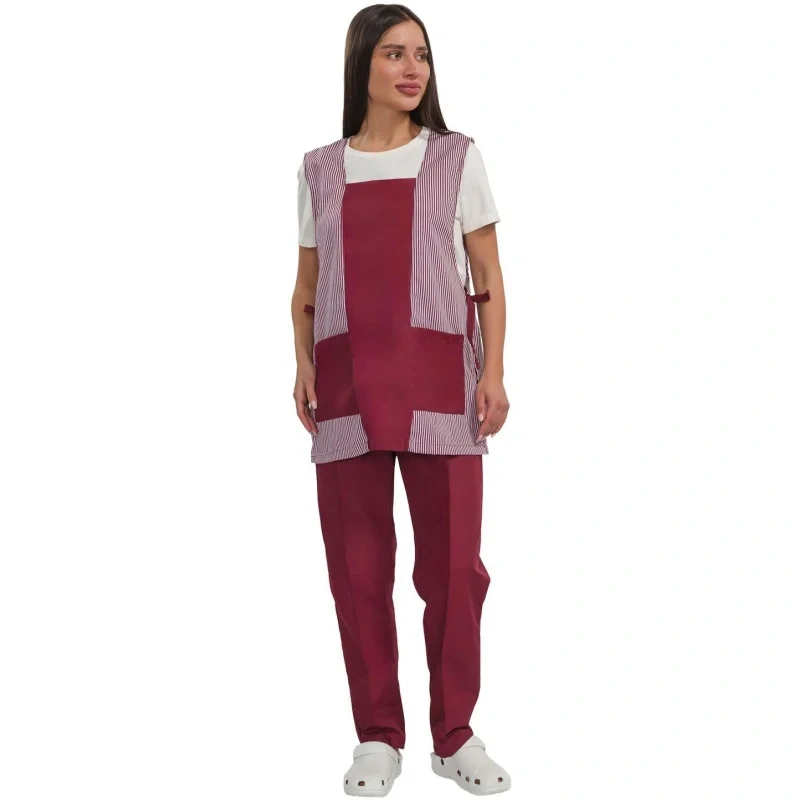 Костюм для горничных и уборщиц у08-СБР бордовый (размер 48–50, рост 170–176 см.) женский.