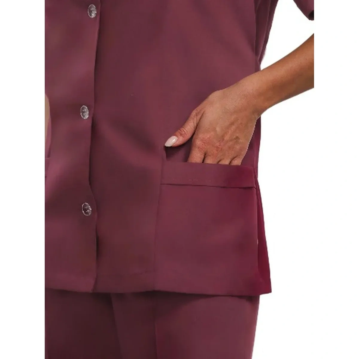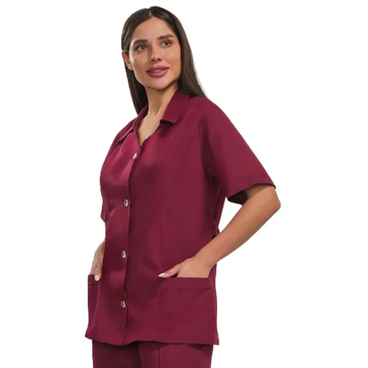 Костюм для горничных и уборщиц женский у12-КБР бордо (размер 96-100 (48-50), рост 170-176) предназначен для сотрудников сферы обслуживания, клининга и гостиничного бизнеса. Этот удобный и практичный комплект состоит из рубашки с коротким рукавом и прямых брюк. Основное преимущество костюма заключается в его удобстве и долговечности.