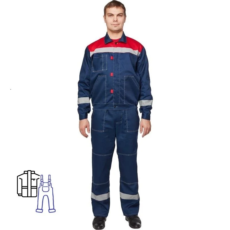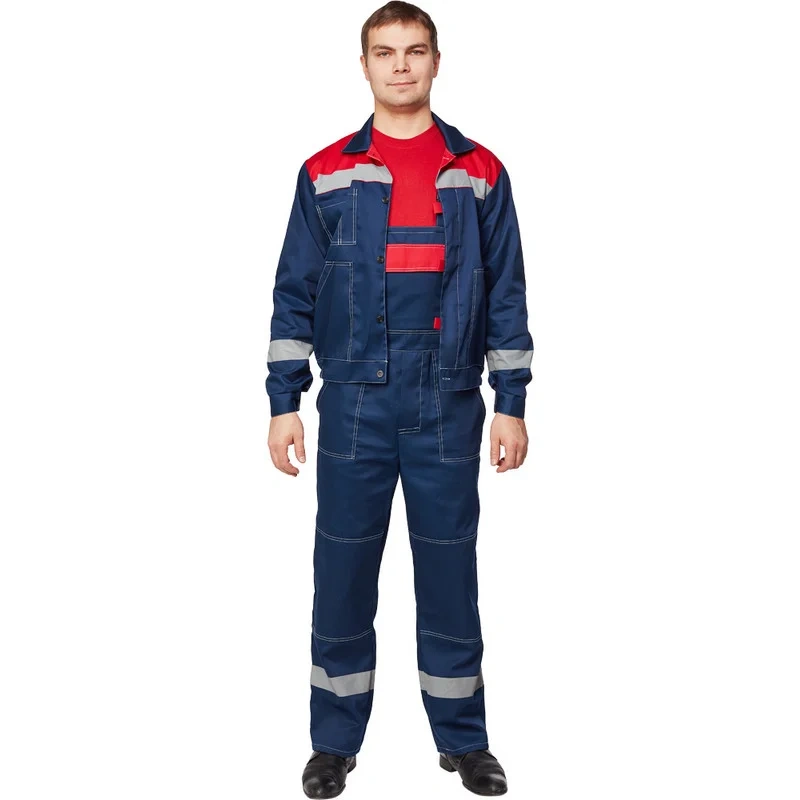Костюм рабочий летний мужской (р.52-54) 182-188, сине-красный, с полукомбинезоном, с СОП, л20