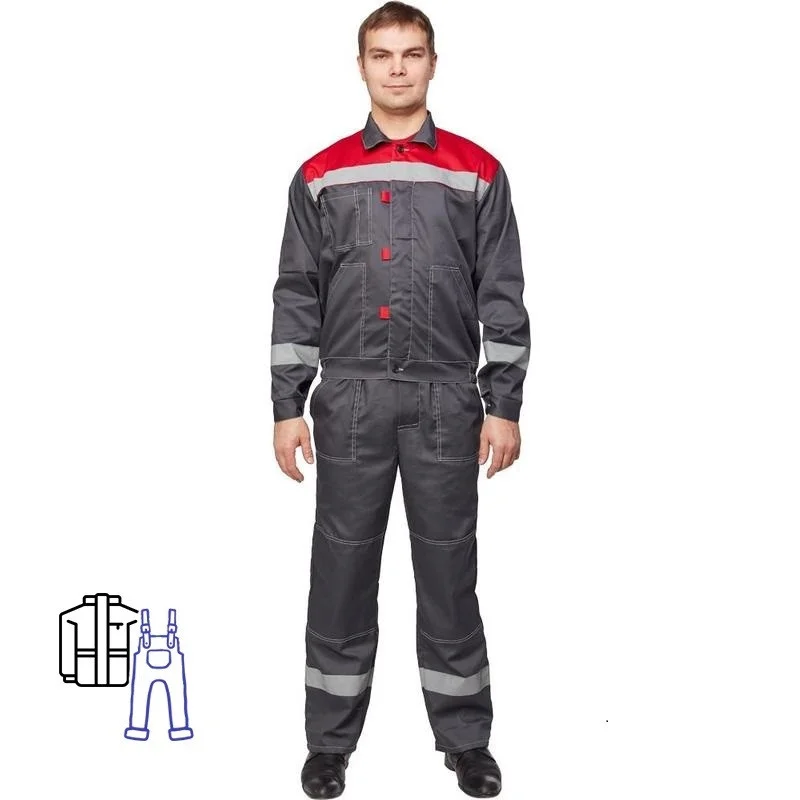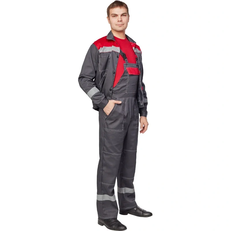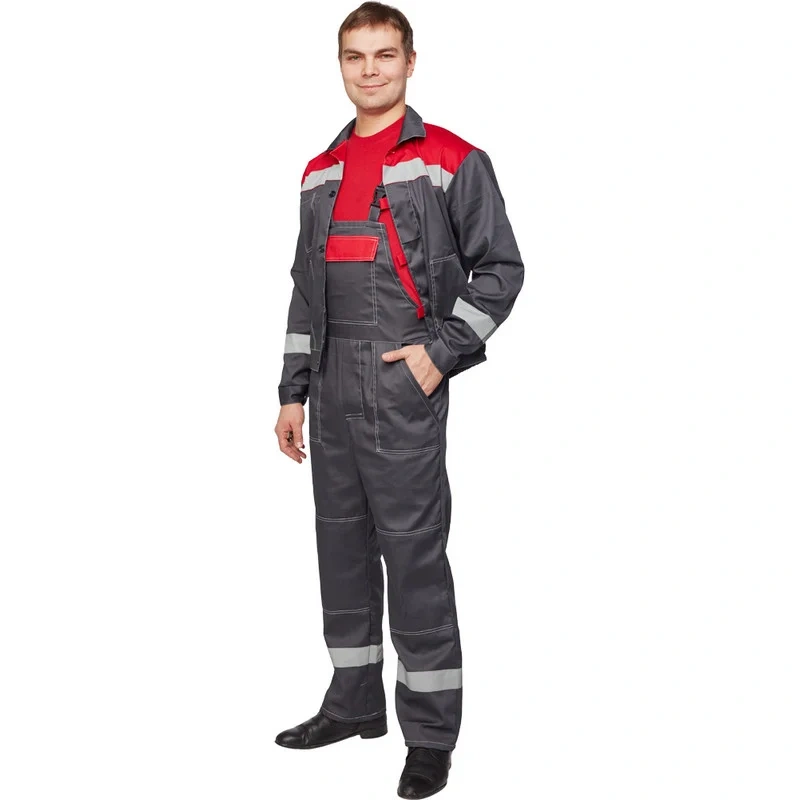 Костюм рабочий летний мужской (р.44-46) 158-164, серо-красный, с полукомбинезоном, с СОП, л20