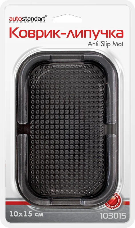 Коврик Autostandart противоскользящий черный прочно фиксирует предметы на наклонных и горизонтальных поверхностях, предотвращая их соскальзывание. Изделие изготовлено в классическом черном цвете и лаконично впишется в любой интерьер салона автомобиля. Продукт морозоустойчив, не восприимчив к высоким температурам, сохраняет свои свойства, презентабельный внешний вид и первоначальный размер при любых погодных условиях. Коврик неприхотлив в уходе, достаточно протереть его влажной губкой, и он вновь обретет первоначальный вид и насыщенный черный цвет. Размер 20х20 см подойдет для размещения на любой поверхности.