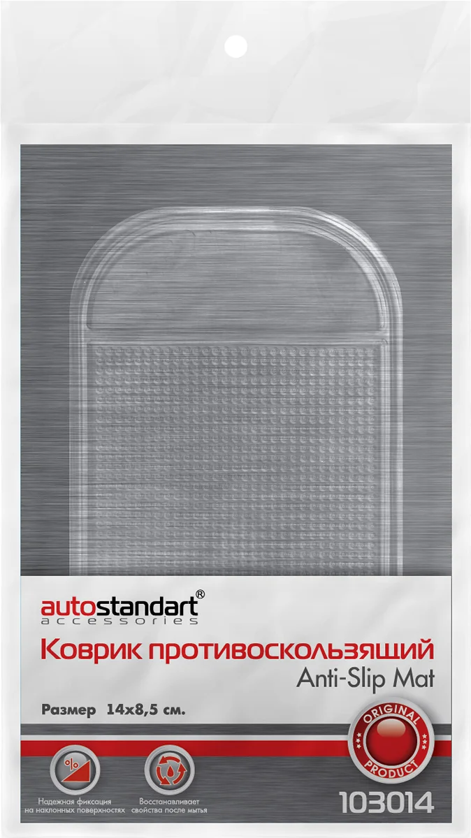 Коврик Autostandart противоскользящий прозрачный лаконично впишется в любой салон автомобиля и не привлечет к себе внимания. Изделие надежно фиксирует предметы на горизонтальных и наклонных поверхностях. Модель изготовлена из эластичного силикона, долгое время сохраняет свои свойства, первоначальный размер и презентабельный внешний вид, не нуждается в особом уходе, достаточно протереть влажной губкой. Прозрачный коврик не бликует на солнце, хорошо переносит как жару, так и сильные морозы. Размер 14,5х8,5 см позволяет прикрепить его на любой, удобной водителю, поверхности.