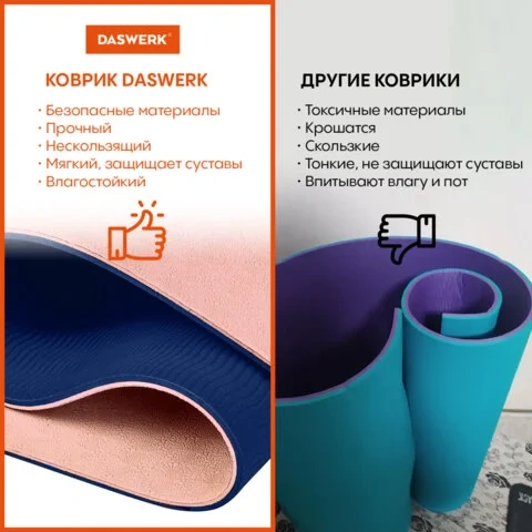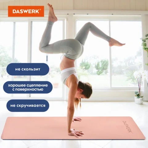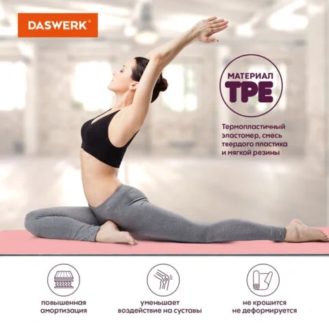 Коврик для йоги и фитнеса DASWERK изготовлен из высококачественного экологически безопасного термопластичного эластомера TPE.