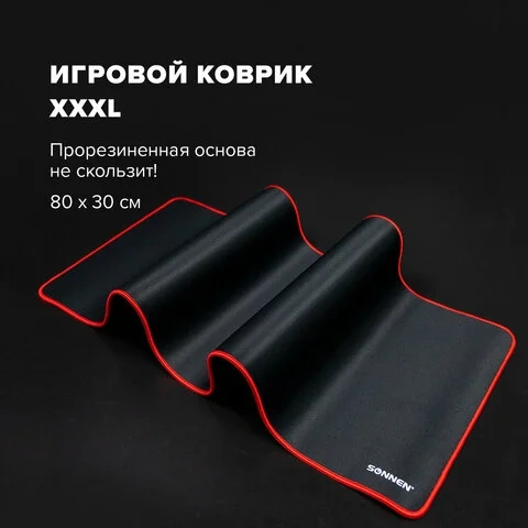 Коврик компьютерный для мыши и клавиатуры большой SONNEN 'BLACK TITAN XL', 800x300x3 мм, черный, 513