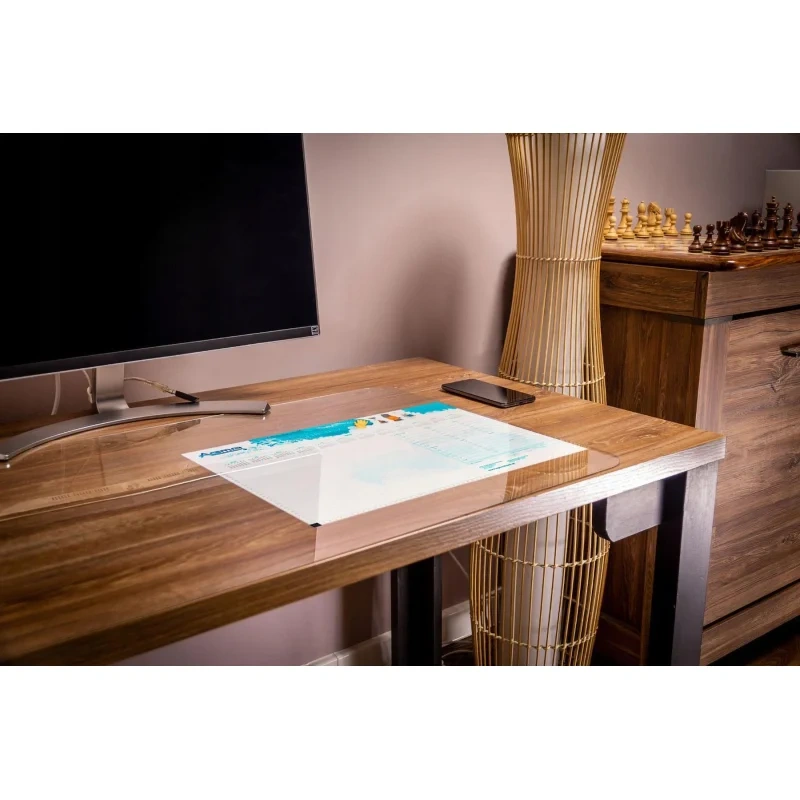 Коврик на стол Attaсhe 800х1200мм гибкое стекло ПВХ, 1мм Коврик на стол Attache послужит стильным и практичным аксессуаром для Вашего стола, он отлично защитит Вашу мебель. Под ним удобно хранить стикеры с записками на следующий день и напоминалки различной информации. Коврик прямоугольной формы размером 80x120 см. Изготовлен из качественного прозрачного ПВХ.