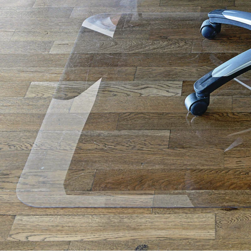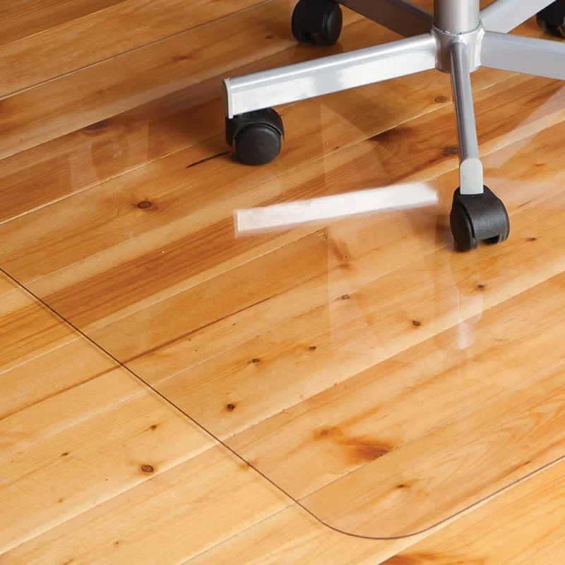 Коврик напольный из поликарбоната предназначен для защиты твердых напольных покрытий (паркет, ламинат, плитка. линолеум и пр.) от повреждений в местах установки офисных кресел и часто посещаемых зонах помещения (приемная, место расположения кофейного аппарата, факса, принтера). Лицевая часть коврика текстурная для невидимости царапин, а также для исключения проскальзывания колес. Поликарбонат обладает повышенной износостойкостью, не желтеет со временем.
