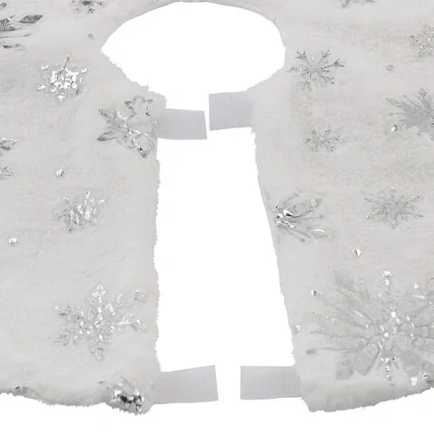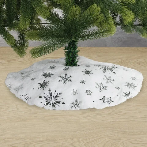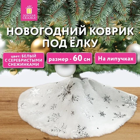 Коврик под елку Золотая Сказка белый, c серебристыми снежинками, 60см