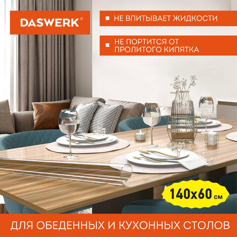 Коврик-подкладка, скатерть ПВХ прозрачная, гибкое/мягкое стекло, 140х60 см, 0,5 мм, DASWERK, 607667