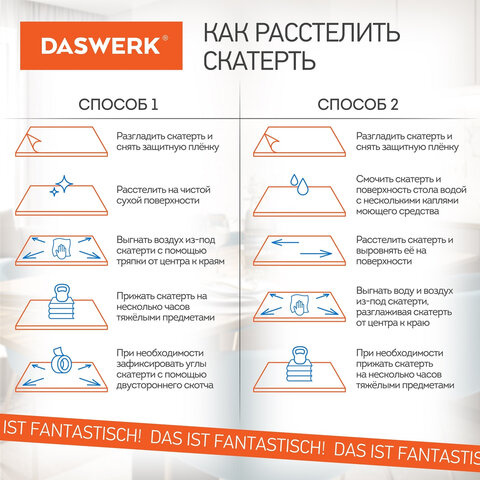 Свернутая в рулон скатерть доставляется в прочном картонном коробе, защищающем от повреждений при транспортировке. Скатерть на кухонный стол DASWERK - это практичное решение для повседневного использования.