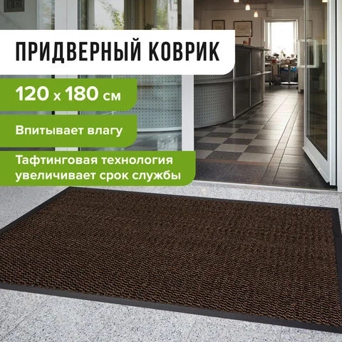 Коврик придверный ИЗНОСОСТОЙКИЙ влаговпитывающий, 120х180 см, ТАФТИНГ, КОРИЧНЕВЫЙ, ЛАЙМА EXPERT, 606