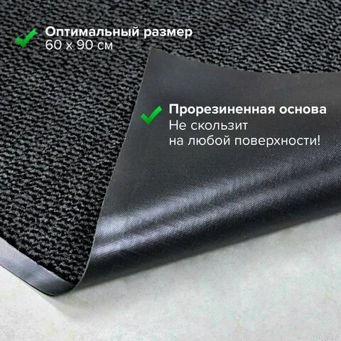 Коврик придверный ИЗНОСОСТОЙКИЙ влаговпитывающий, 60х90 см, ТАФТИНГ, СЕРЫЙ, ЛАЙМА 'EXPERT', 606883,